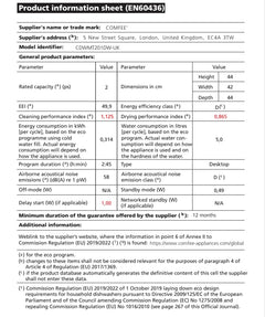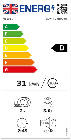 - 【20.7% Energy Saving Compared to Class G】The COMFEE' mini dishwasher CDWMT201DW-UK has an upgraded energy efficiency rating of class D, which uses 20.7% less energy than class G when using the ECO program.
