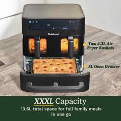 - GENEROUS 13.6L COOKING CAPACITY- to feed a crowd With two large air fryer baskets plus a spacious flat oven drawer, you can cook more food in fewer batches—perfect for busy weeknights, big families, or entertaining guests