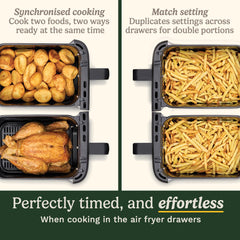 - PERFECT TIMING ACROSS AIR FRYER BASKETS with Smart Sync Cooking & Match Settings Finish different dishes at the same time or duplicate settings for effortless, coordinated cooking - no more juggling timers or uneven results