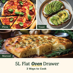 - 5L FLAT SURFACE OVEN - for Everyday Versatility Perfect for 12” pizzas, quiches, brownies, toast, and more, the spacious flat oven offers dedicated pizza, toast, and manual modes to suit a wide range of meals